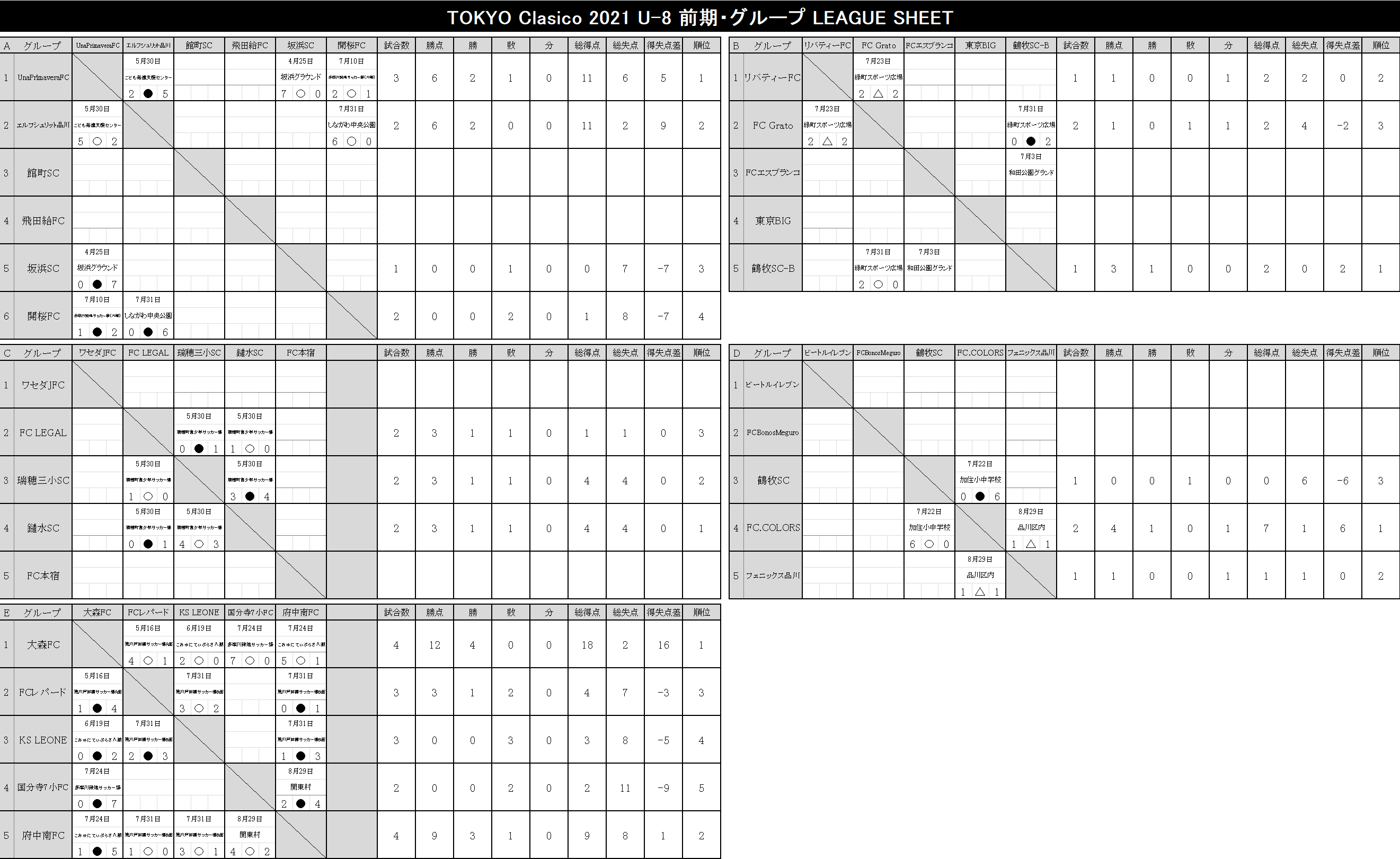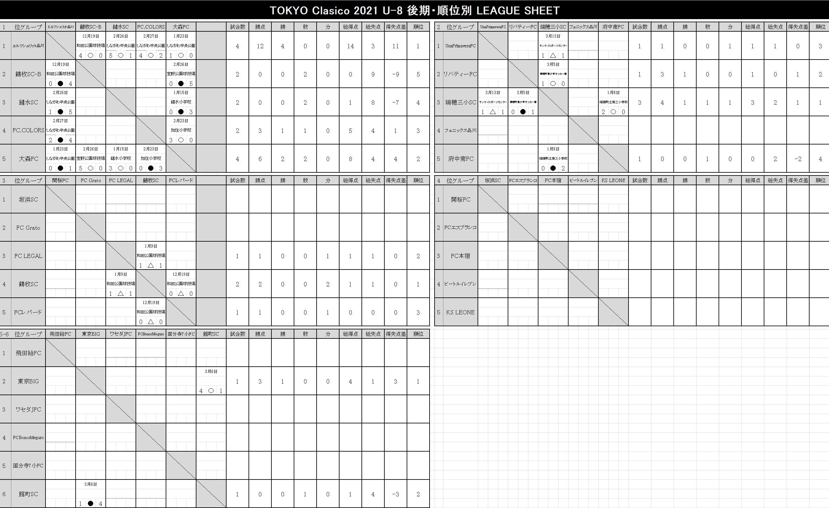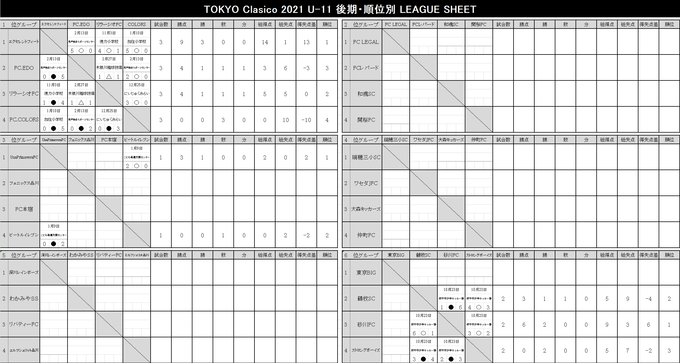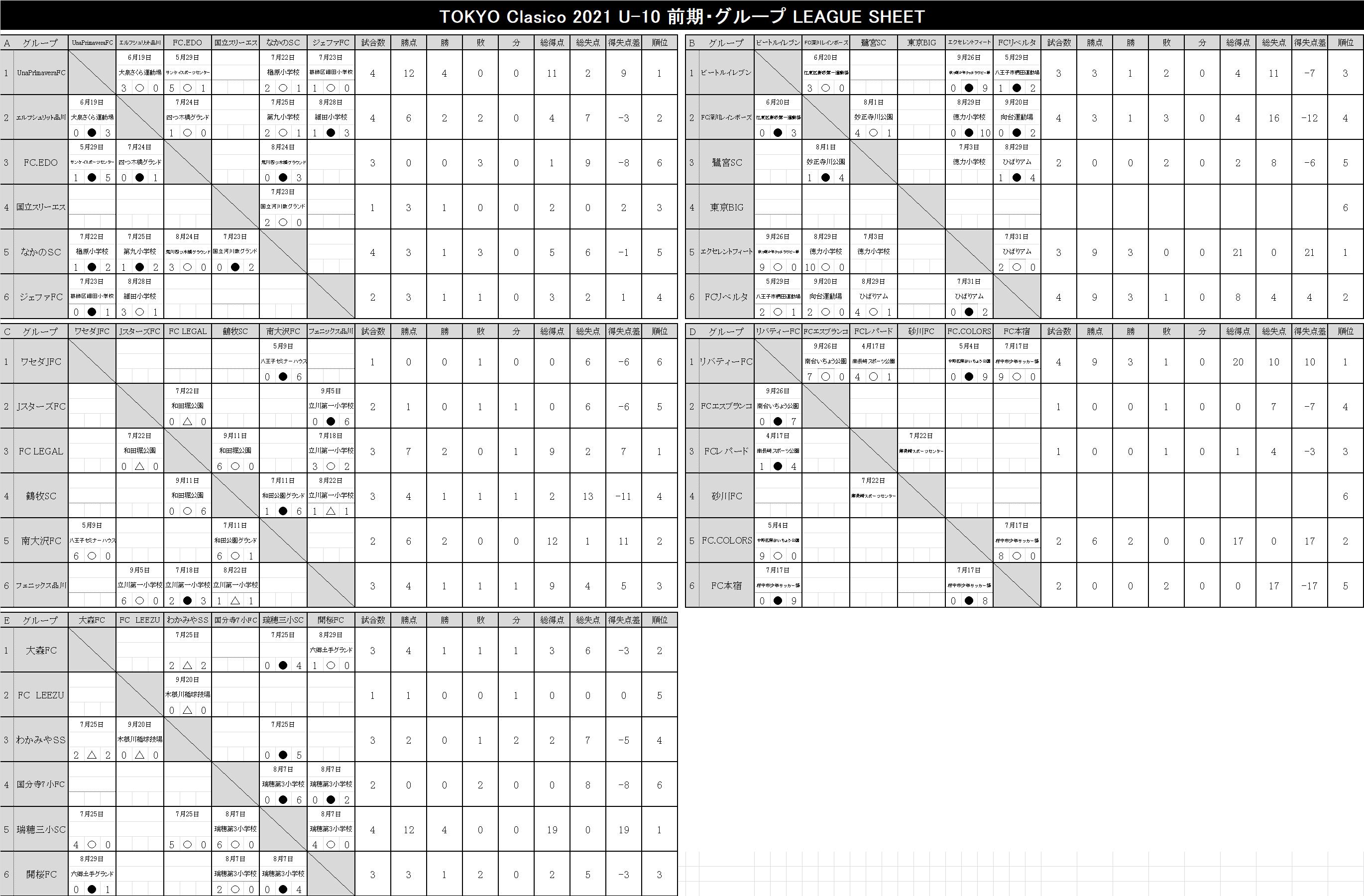 2021 順位表 2022.03.13更新【U-12】TOKYO-CLASICO-2021.xlsx【U-11】TOKYO-CLASICO-2021.xlsx【U-10】TOKYO-CLASICO-2021.xlsx【U-9】TOKYO-CLASICO-2021.xlsx【U-8】TOKYO-CLASICO-2021.xlsx 後期リーグ 2022.03.13更新 【U-12】TOKYO-CLASICO-2021.xlsx 【U-11】TOKYO-CLASICO-2021.xlsx 【U-10】TOKYO-CLASICO-2021.xlsx 【U-9】TOKYO-CLASICO-2021.xlsx 【U-8】TOKYO-CLASICO-2021.xlsx 前期リーグ 2021.09.27更新 【U-12】TOKYO-CLASICO-2021.xlsx 【U-11】TOKYO-CLASICO-2021.xlsx 【U-10】TOKYO-CLASICO-2021.xlsx 【U-9】TOKYO-CLASICO-2021.xlsx 【U-8】TOKYO-CLASICO-2021.xlsx 決勝大会 過去の大会結果 2020シーズン Entry エントリー 参加チーム募集。 東京クラシコでは、U-8~U-12ジュニア年代のコミュニティとして、各クラブの繋がりが広がる環境づくりに貢献します。ぜひ、お気軽に申込ください。 今すぐエントリー ページトップへ