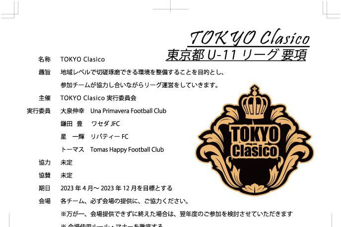 【関係】コミュニティとして、参加チームの横の繋がりを広げることに貢献する。都内各地から集結するリーグへと発展を目指す。