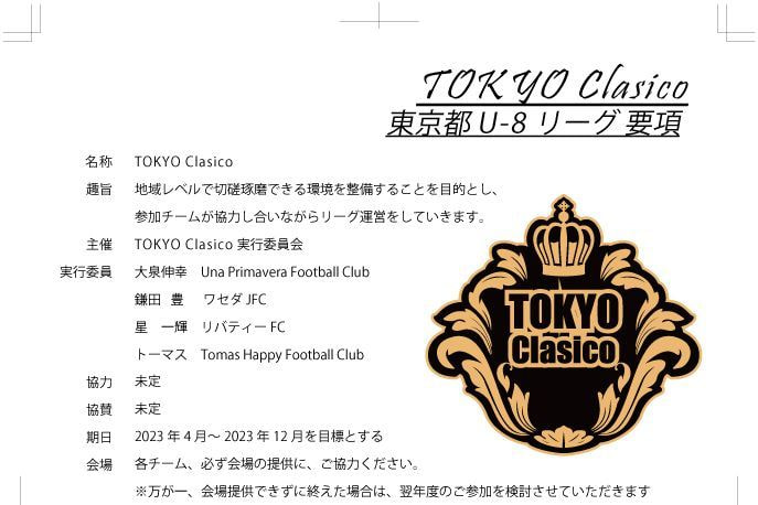 東京クラシコでは、U-8~U-12ジュニア年代のコミュニティとして、各クラブの繋がりが広がる環境づくりに貢献します。ぜひ、お気軽に申込ください。