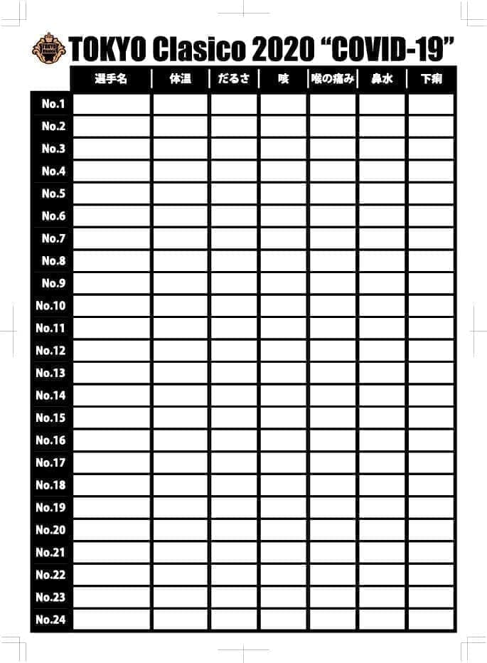 ・COVID-19対策チェックシートを記入ください(項目に一つでも引っ掛かる場合は、出場を控えてください。)